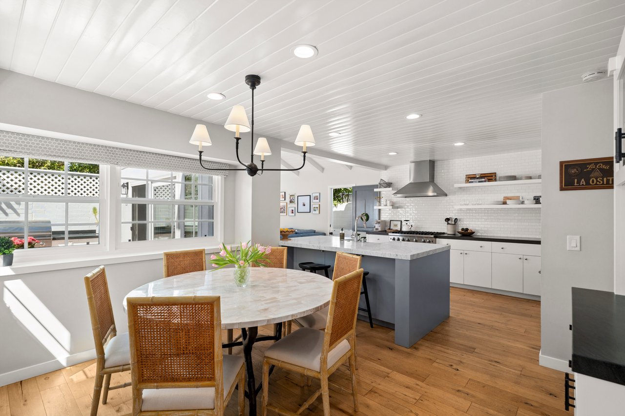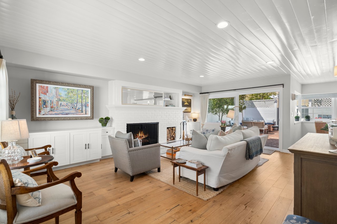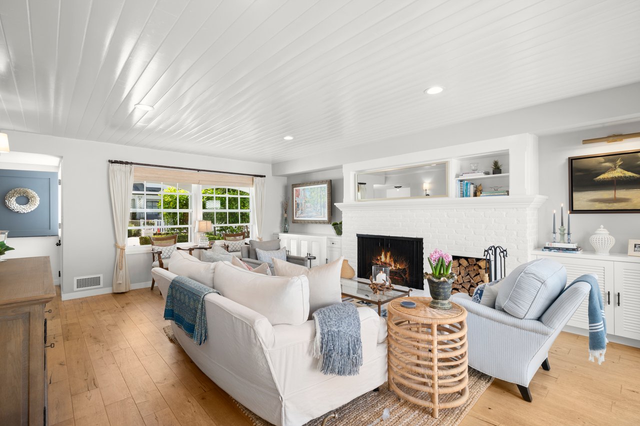 Welcome to 213 Via Mentone, a mid-island gem in the heart of Lido Isle, offering four bedrooms and three baths in 2444 square feet of elegant living space. Completely remodeled in 2018, this residence is replete with natural light throughout, an open, inviting floor plan, and impressive indoor and outdoor entertaining spaces, all strategically positioned on an oversized, street-to-strada 40-foot lot. The charming brick walkway curves to the hidden front Dutch door – step inside to a stunning living room with original wood-burning fireplace, new built-ins and custom shiplap ceilings. The guest bedroom and ¾ bath are found on the first floor, as is the gorgeous Chef’s kitchen, featuring a Viking Pro range, oven, and refrigerator, as well as Bosch and Sharp appliances. The spacious marble island centers the room and offers a breakfast bar and hidden microwave. Adjacent is the inviting family room, with a soaring ceiling, additional wood-burning fireplace, and stunning oyster-shell chandelier. Another Dutch door leads to the side yard and strada, while sliding glass doors open onto the patio, completely re-imagined in 2020. Here you’ll find a built-in barbecue and large fire pit with seating as well as plenty of room for dining al fresco. Custom double doors offer privacy when desired and open onto the lush backyard, complete with white picket fence. Upstairs, private living spaces include the Primary Suite with custom built-in closets and an en suite bath. Two additional bedrooms are bathed in light and feature large windows, open to fresh ocean breezes. An added full bath offers a double vanity and tub/shower combo. Luxury fixtures and finishes, new wood floors throughout, custom storage cabinets, and a singular attention to detail in this updated coastal home create a turn-key opportunity for the discerning buyer. Enjoy private beaches, docks, and parks, tennis, basketball and pickleball courts, the Lido Island Yacht Club, endless stradas, and a clubhouse all dedicated to the enjoyment of life within this special island community. A short distance to Lido Village, the surrounding shops and restaurants, and endless white sand beaches ensure an idyllic lifestyle in the most desirable neighborhood in Newport Beach.
